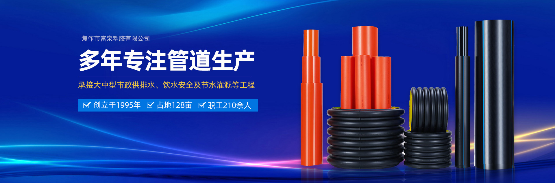 - 焦作市富泉塑膠有限公司,創(chuàng)立于1995年,是一家集研發(fā)、設計、生產、銷售為一體的大型管材企業(yè)。公司位于太極故里、黃河之濱一一河南焦作溫縣。公司占地128畝,現有職工210余人,其中具有中技術職稱的19人。生產、檢驗設備58臺(套),包括PVC實壁管生產線11套、PE實壁管生產線12套、HDPE雙壁波紋管生產線6套、PVC雙壁波紋管生產線5套,檢驗設備14臺(套)。主要產品有:Φ20mm-630mm、各種壓力規(guī)格的PVCU、PVC-M、PE給水管材,PVC-U節(jié)水灌溉管材,HDPE燃氣和礦用管材,DN200-800mm的HDPE、PVC雙壁波紋管及各種噴灌、滴灌工程材料。承接大中型市政供排水、飲水安全及節(jié)水灌溉等工程?! 「蝗苣z公司重視產品的質量、安全、環(huán)保和節(jié)能,在同行業(yè)中率先完成了“新華節(jié)水產品認證”,全方面通過ISO9001:2008國際質量管理體系、IS014001:2004環(huán)境管理體系和OHSAS18001職業(yè)健康安全管理體系的一體化導入,并建立起規(guī)范的現代企業(yè)管理體系。公司以“質量”為先導,采用質量跟蹤、多環(huán)節(jié)把關的方法,組建具有行業(yè)水準的企業(yè)技術檢測中心,常年委托水利部節(jié)水灌溉設備檢測中心、河南省產品質量監(jiān)督檢驗院對產品跟蹤檢測,并由中國人民保險公司承保產品質量。公司連續(xù)多年被河南省水利廳確定為“安全飲水設備、節(jié)水灌溉設備”定點生產企業(yè),并獲得“中國名優(yōu)產品”“質量、服務、信譽AAA企業(yè)”“河南省**產品”“河南省水利企業(yè)”“河南省守合同、重信用企業(yè)”等榮譽稱號?! 「蝗苣z公司堅持“用戶為上”的服務理念,長期以來,全方面關注客戶價值,不斷提升服務水平。服務隊伍常年為客戶的產品設計、施工、安裝提供合理的方案和全程細致、周到、**、快捷的技術服務。公司自成立以來,一直堅持以人為本的宗旨,塑造企業(yè)形象,并致力于新產品的開發(fā),憑借雄厚的技術開發(fā)能力,先進的工藝制造流程,嚴格的質量管理保證體系,優(yōu)良的售后服務網絡,已成為河南省大的飲水、灌溉及排水管材設備制造商。產品暢銷全國,而且還以公司雄厚的綜合實力在業(yè)界中占據著重要的地位。